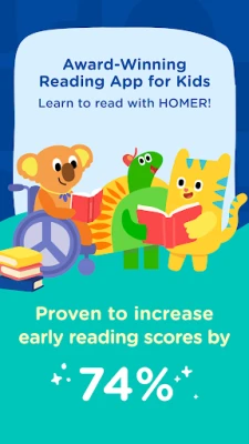 Did you know that just 15 minutes a day with HOMER’s step-by-step reading pathway is proven to boost early reading scores by 74%? Help your child learn to read with HOMER—an award-winning educational app featuring thousands of interactive activities designed for independent play!