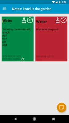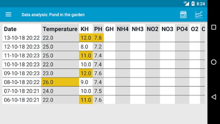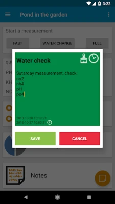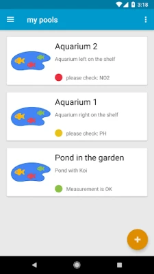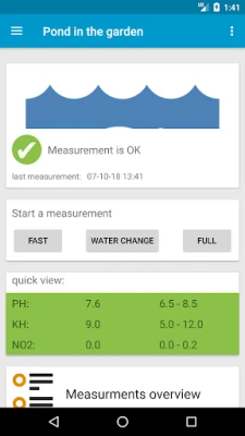 So you always have the current status at a glance. Make all the ponds and aquariums you have and choose the type, e.g. Koi-pond and it will load all the optimal settings for the water parameters, this can of course edit later.