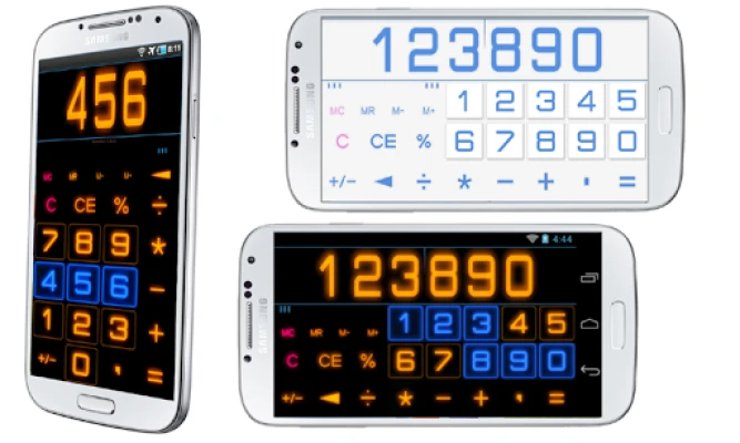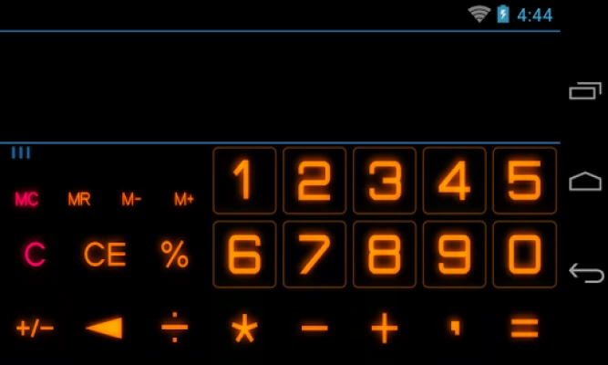 Calculator with percentages, memory, history, large digits and continuous lighting buttons for avoid mistakes.