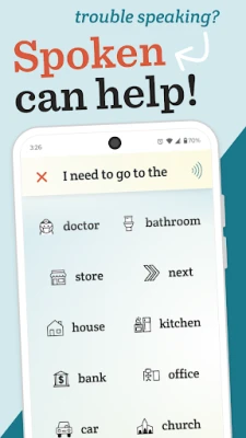 Never miss out on the conversation again. Spoken is an AAC (augmentative and alternative communication) app designed for teens and adults who have trouble speaking due to nonverbal autism, aphasia, or other speech and language disorders. Simply download the app on a phone or tablet and tap on the screen to build sentences quickly — Spoken speaks them automatically, with a wide variety of natural-sounding voices to choose from.